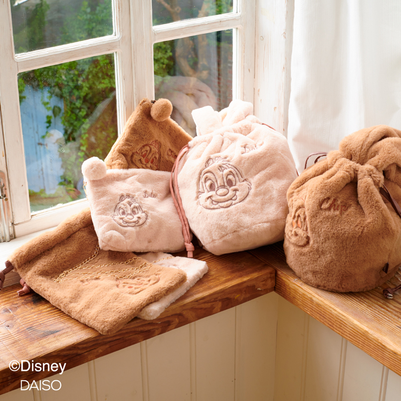 本シリーズは、ディズニーの人気キャラクター「チップとデール」を使ったデザインで、お部屋を彩るリビングアイテムとしてスリッパや収納ボックス、普段使いできる可愛いパスケース、ボア巾着型バッグ、ポーチなど全37種を展開します。