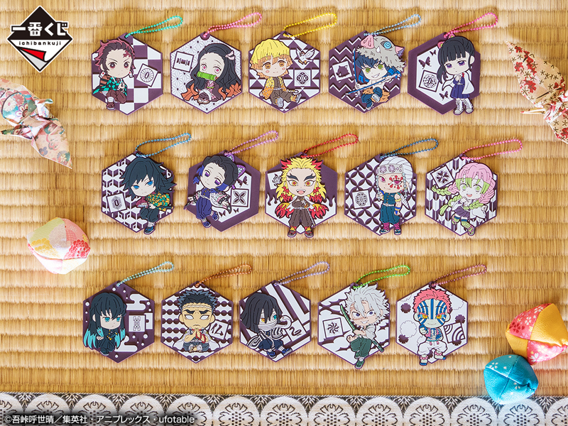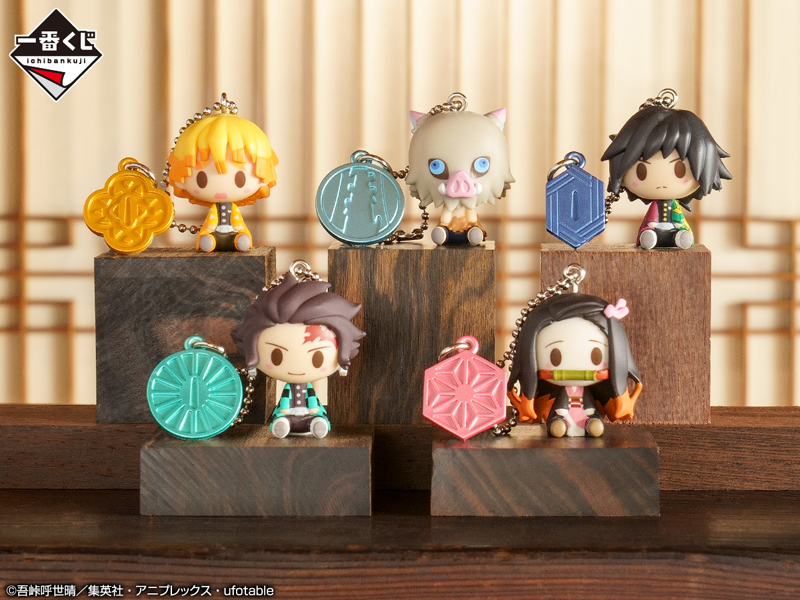 このほか、人気のちょこのっこフィギュアがチャームになった、ちょこのっこチャーム、ufotableによるテレビアニメ『鬼滅の刃』の美麗イラストやきゅんキャライラストなどがデザインされたクリアファイルのセット、きゅんキャライラストのラバーコースターと、一番くじならではの商品の魅力をご堪能ください。