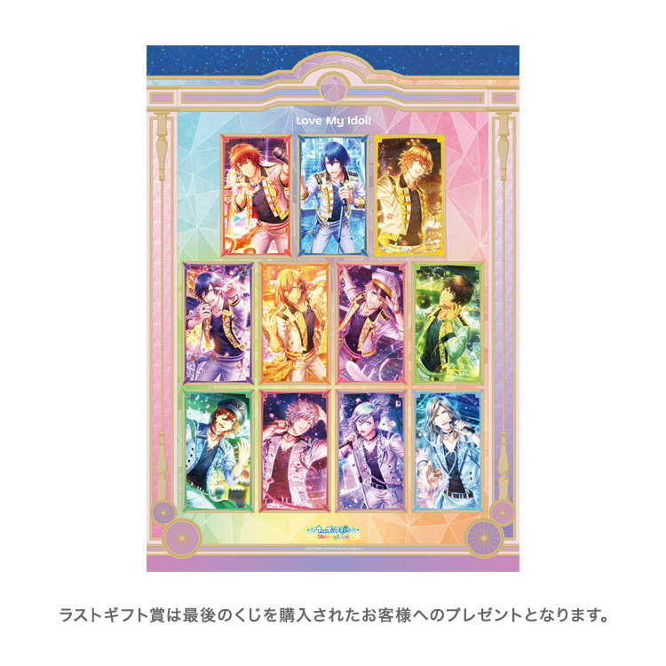 本商品は、今年の8月28日にサービス開始から4周年を迎えたスマートフォン向けリズムアクションゲーム『うたの☆プリンスさまっ♪ Shining Live』から、“Love My Idol! アナザーショット Ver.”のビジュアルを使用したくじとなっています。