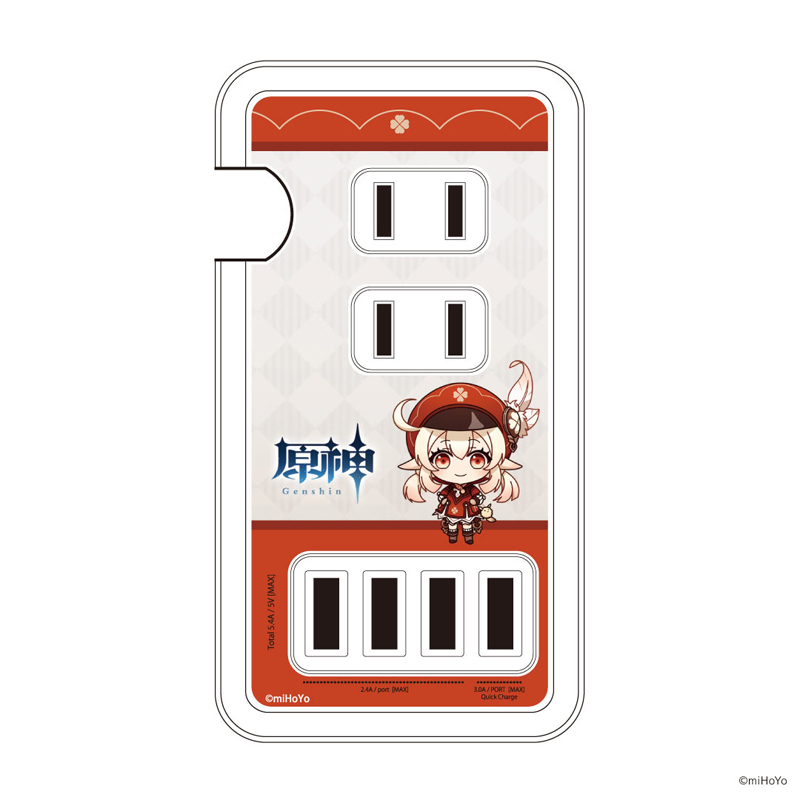 人気キャラクター・クレーの描き起こしミニキャラを採用したオリジナルタップ。最大4台のスマートフォンやモバイルバッテリーなどが同時に充電可能なタップでコンセント3個口とUSB充電4ポートを1つのタップから使用できます。