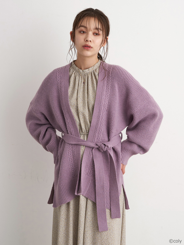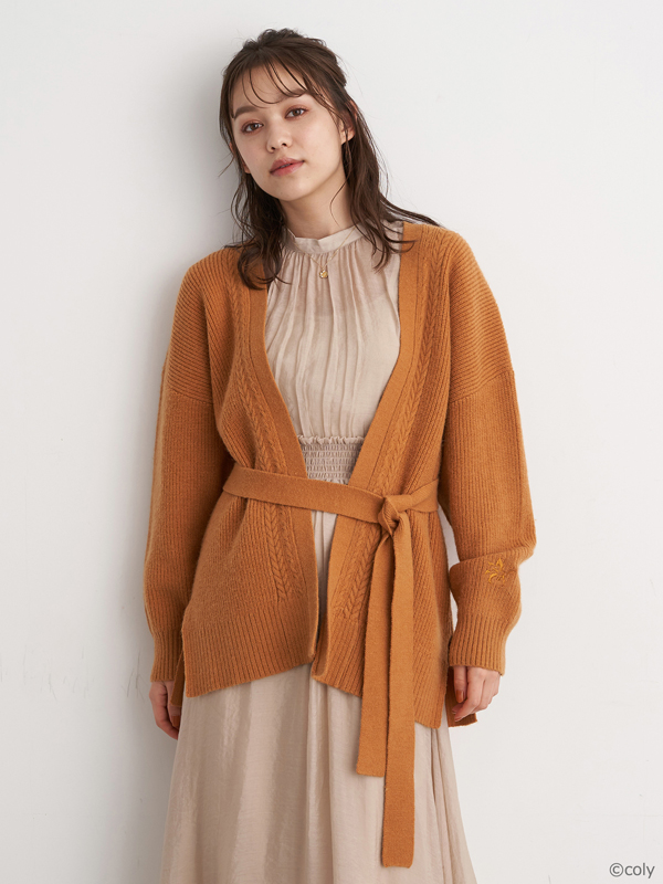 袖に施した賢者の魔法使いの紋章の刺繍と、フロントのケーブル編みがアクセントになったデザイン。取り外し可能なベルト付きで、後ろで結んだりウエストマークをしたりとお好みの着こなしをお楽しみいただけます。