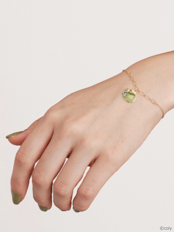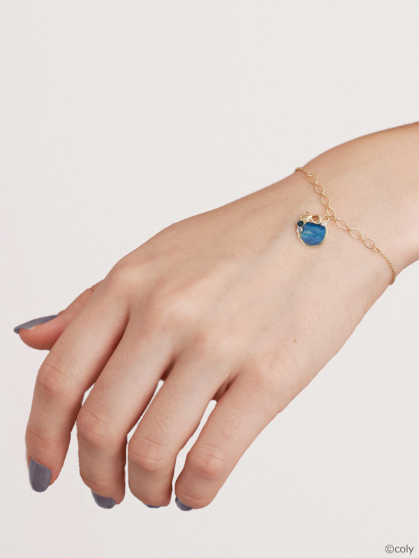 月や星、カラーガラスなどを組み合わせたチャームがポイントのブレスレット。ラメが入ったグラデーションカラーのエポが幻想的な印象をプラスしてくれます。