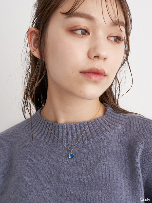 月や星、カラーガラスなどを組み合わせたチャームが目を引くネックレス。ラメが入ったグラデーションカラーのエポが幻想的な印象をプラスしてくれます。