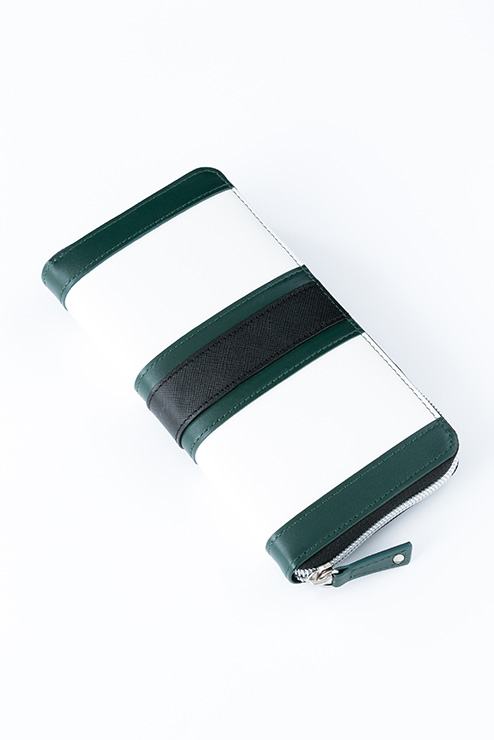 キャラクターイメージが凝縮されたデザインは女性にも使いやすく、ポケットも多くて使い勝手も抜群とのこと。本革製なので、使うほどに味が出てくる。
