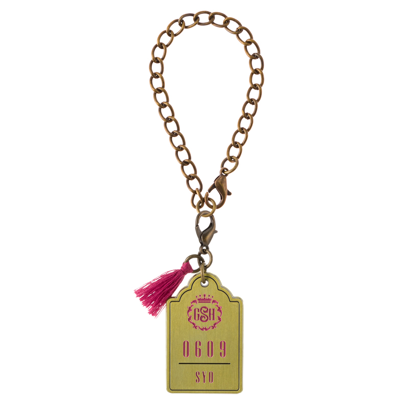 「Grand Shining Hotel」のルームキーをイメージしたキーホルダーの登場です。クラシカルな風合いのボディにアイドルたちのイニシャルやイメージカラーをあしらいました。お気に入りのバッグや小物などにつけても◎。