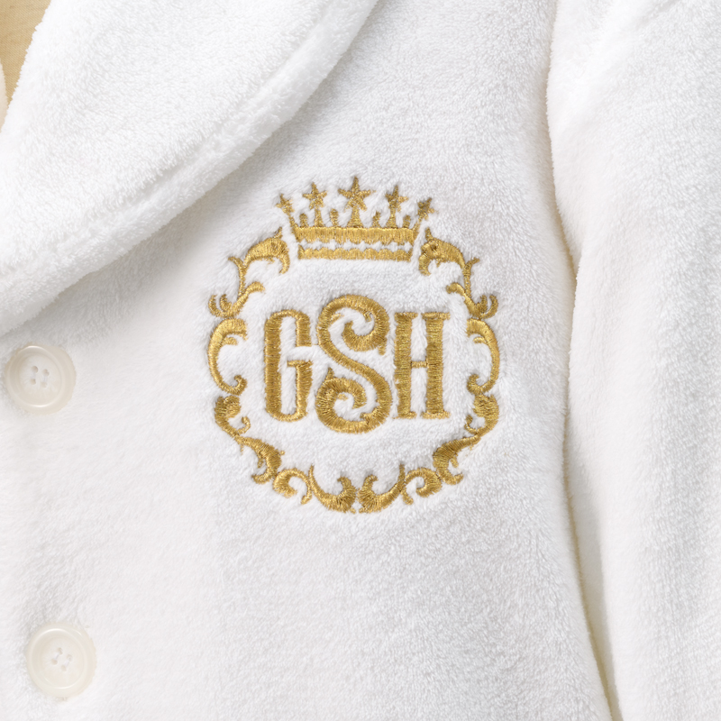 「Grand Shining Hotel」をイメージしたガウンです。もこもこのあったか素材は、ルームウェアとして使い心地抜群。胸元にはホテルロゴが刺繍であしらわれています。