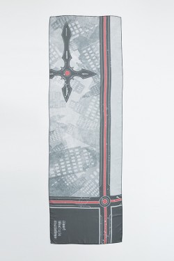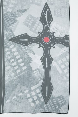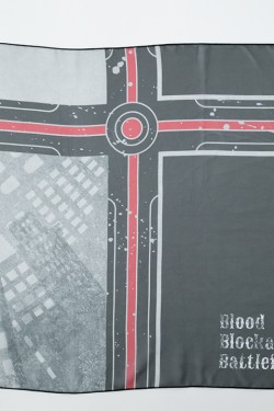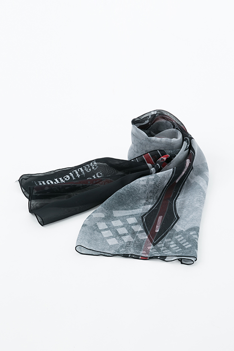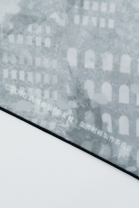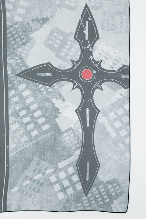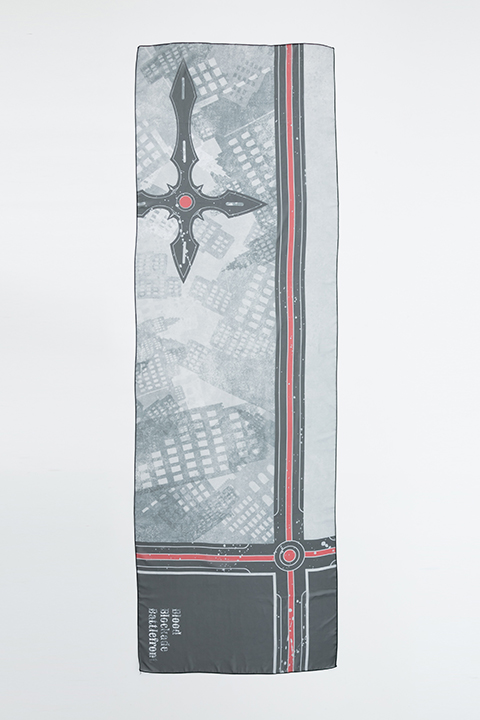 デザインは、話題作『血界戦線』のダークな世界観をベースに、クラウスのナックルの十字架とスティーブンの靴の十字架を大胆にあしらったもの。モノトーンのなかに映える赤いラインがコーデを引き締める。首元はもちろん、あなたの持っているアイテムに巻いてもきまるストールとなっている。