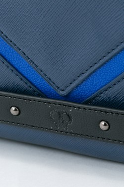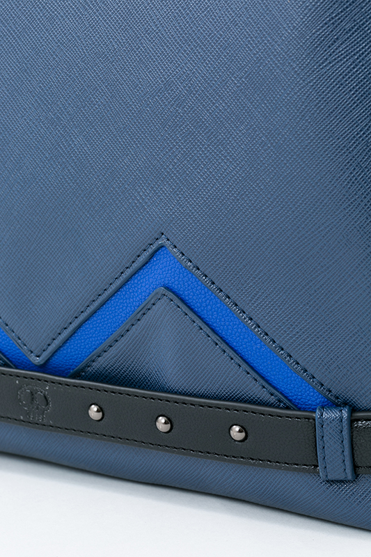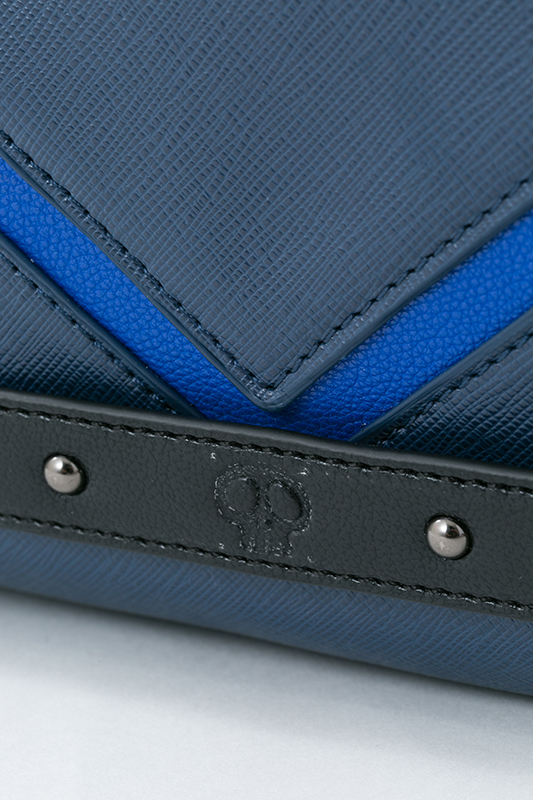 鮮やかなブルーの切り替えしは、カラ松の眉毛をイメージ! カラ松の私服でよく見るベルトのドクロを型押しで再現しています。