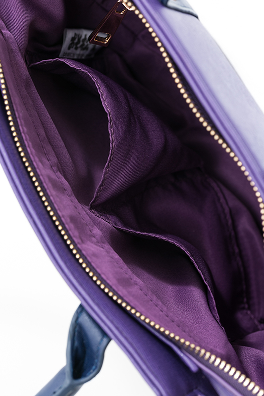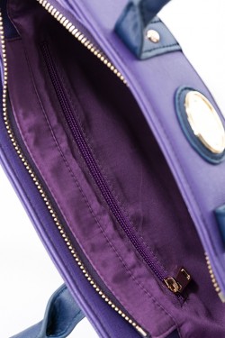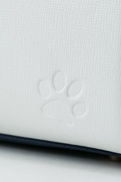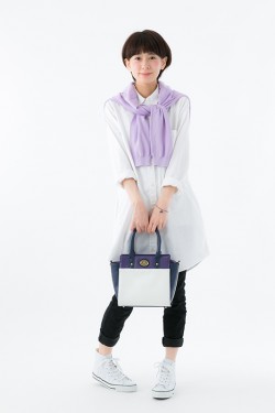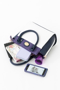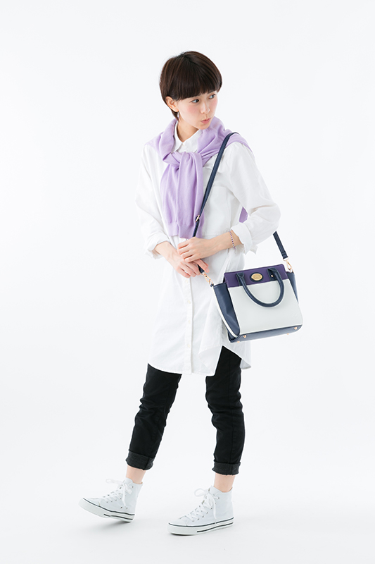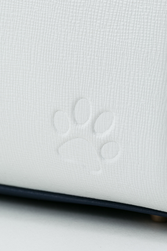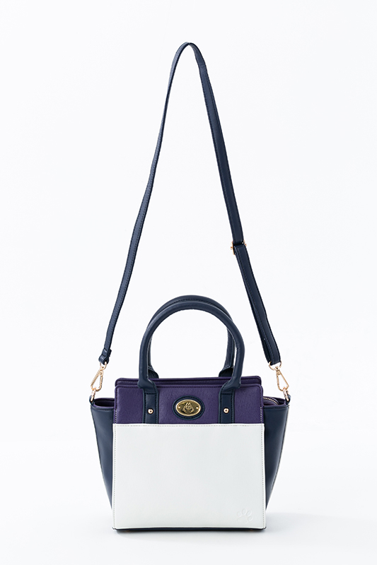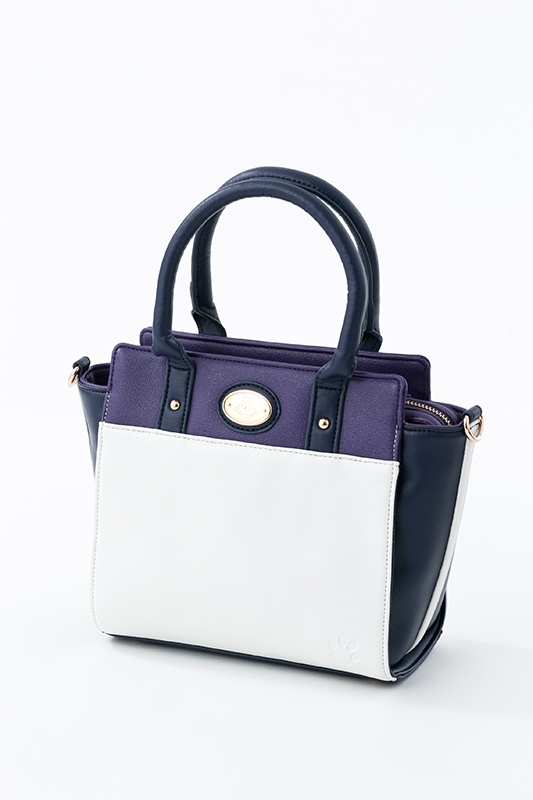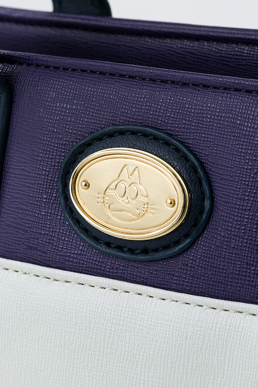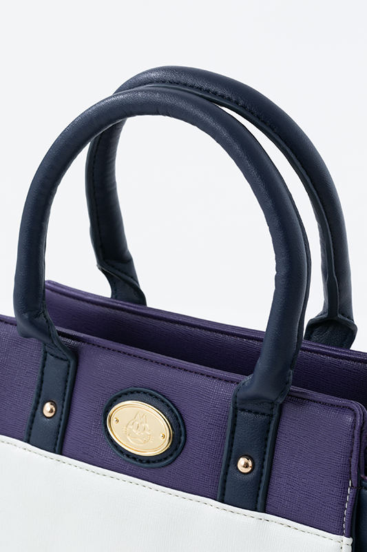 一松のイメージカラーのパープルに、ホワイトを取り入れた上品な色合いで、サイドのマチ部分は一松が着ているジャージ風の白いラインが入っています。切り替えしのホワイト部分は、一松らしいマスクをイメージ!