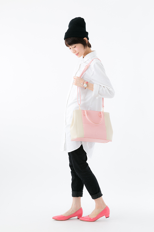 両サイドのスナップボタンでマチの調節も可能なので、荷物が増えても安心です。