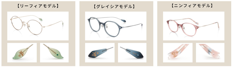 イーブイと8匹の進化形をイメージしたシリーズ。テンプルのエンドパーツにそれぞれのポケモンのシルエットと図鑑番号・イメージカラーのスワロフスキーを配しました。イーブイとその進化形で構成されたポケモンから着想を得た“なりたいと思えば何にだってなれる”というメッセージをメガネと付属品で表現しました。