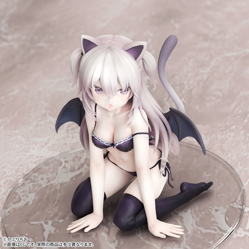 色白な体に翼と尻尾と下着が映える。“にゃんこ×サキュバス=にゃきゅばす”のフィギュアが登場