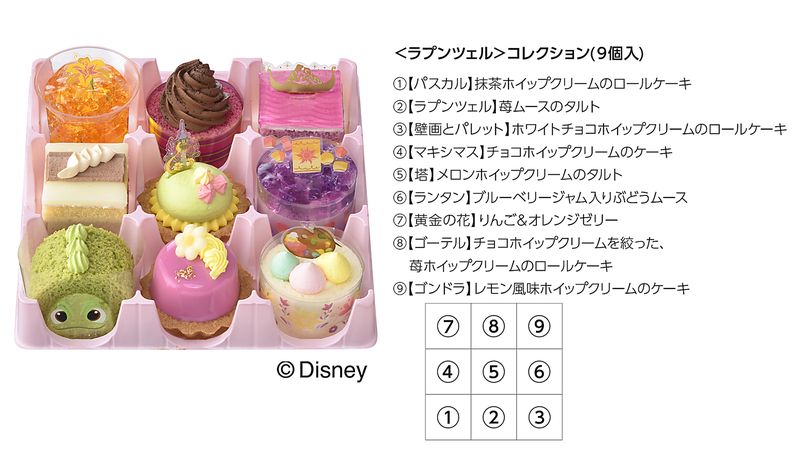 『<ミニーマウス>デコレーション』は、別添えのピックでリボンやジュエリーを思い思いに飾ってデコレーションを楽しむことができ、『<ラプンツェル>コレクション(9個入)』は、お気に入りのお皿に並べて物語に想いを馳せるなど、ケーキを囲んで楽しいひとときをお過ごしいただけます。