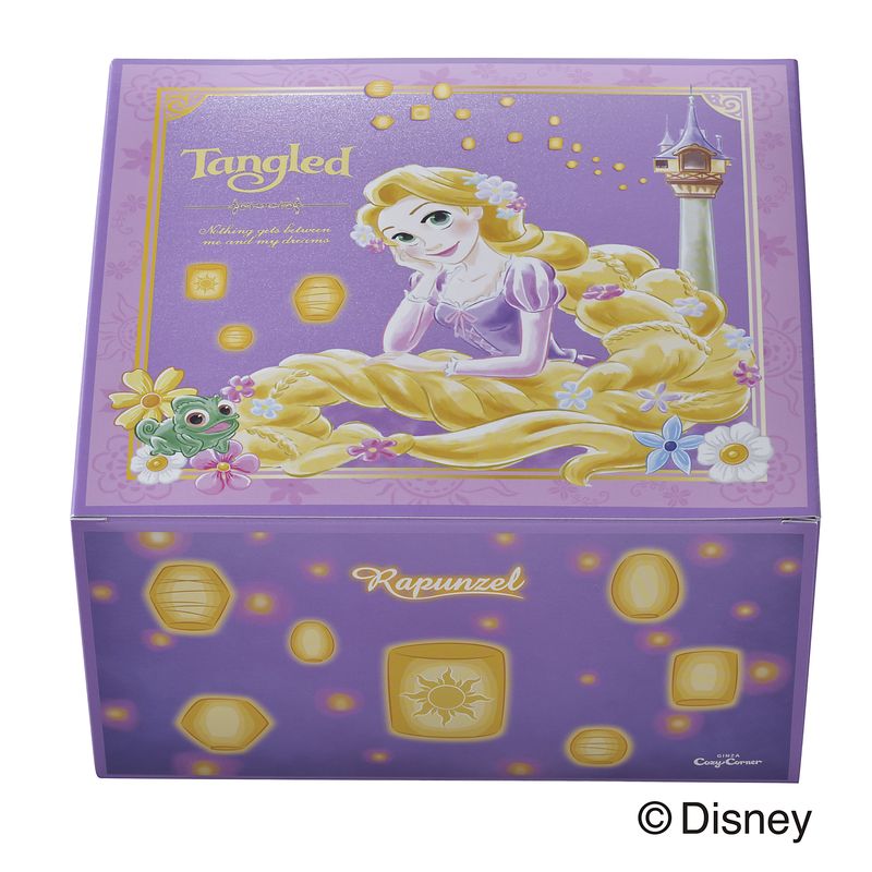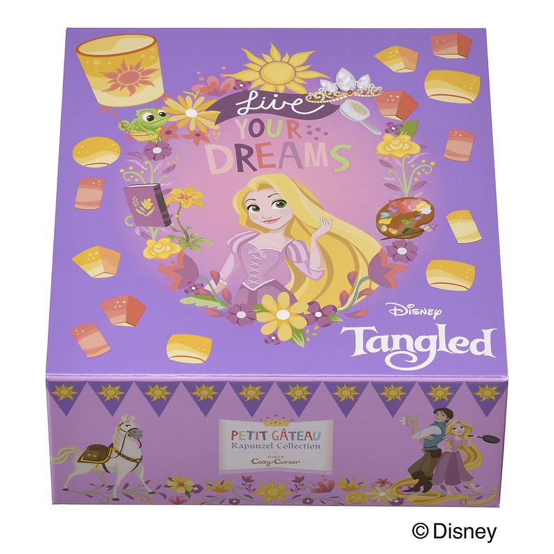 憧れのディズニープリンセス「ラプンツェル」が登場する物語『塔の上のラプンツェル』。「ラプンツェル」や「パスカル」の他、夜空に舞うランタン、湖に浮かぶゴンドラなど物語の世界観を9つのプチケーキにデザインしました。