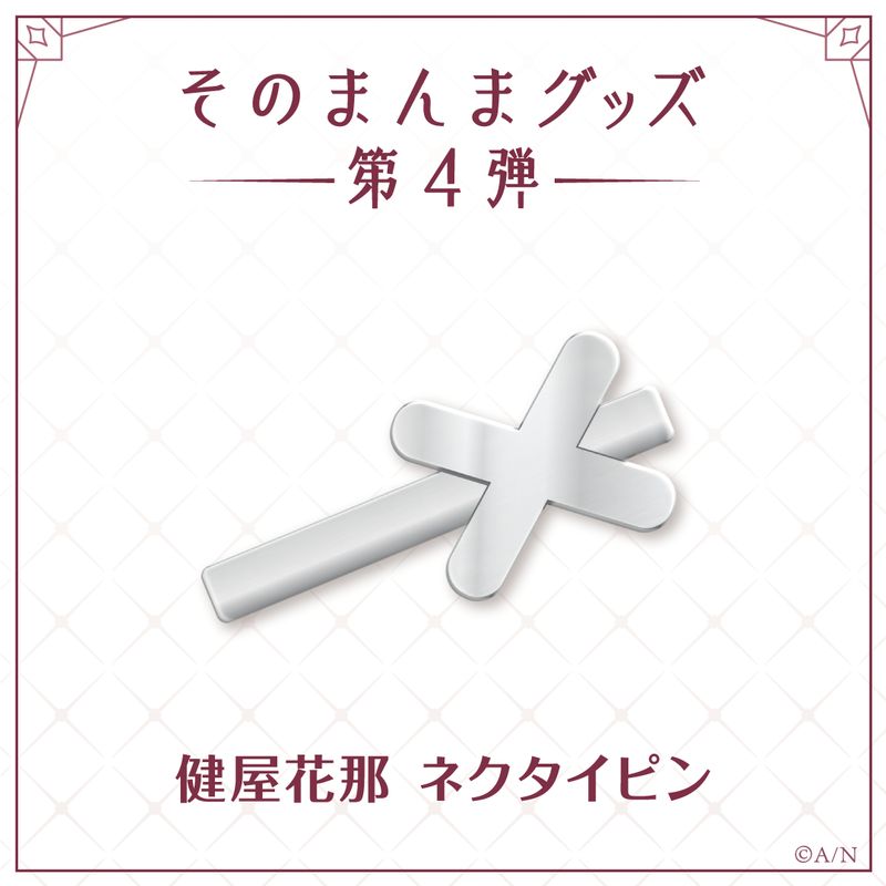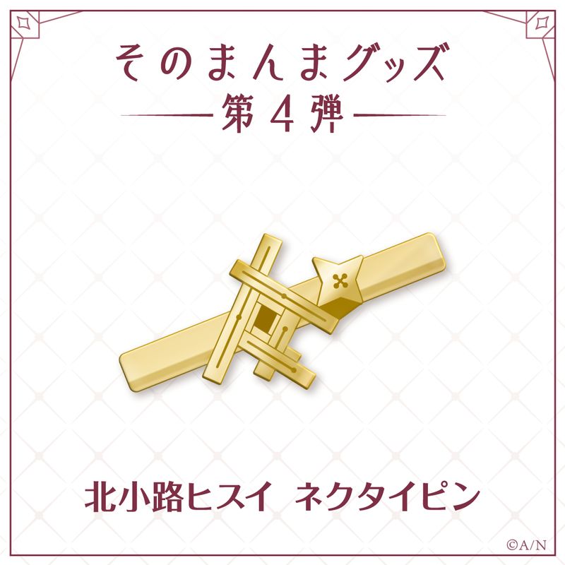 アンジュ・カトリーナのブローチ、ジョー・力一のネクタイピンの他、北小路ヒスイ、椎名唯華、健屋花那が、デフォルト衣装にて身に着けているヘアピンをネクタイピンに落とし込みグッズ化した“そのまんまグッズ第4弾”は、2022年1月28日18:00~2022年2月20日23:59まで、にじさんじオフィシャルストアにて受注販売を実施いたします。
