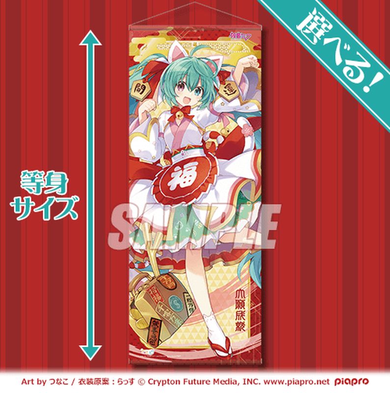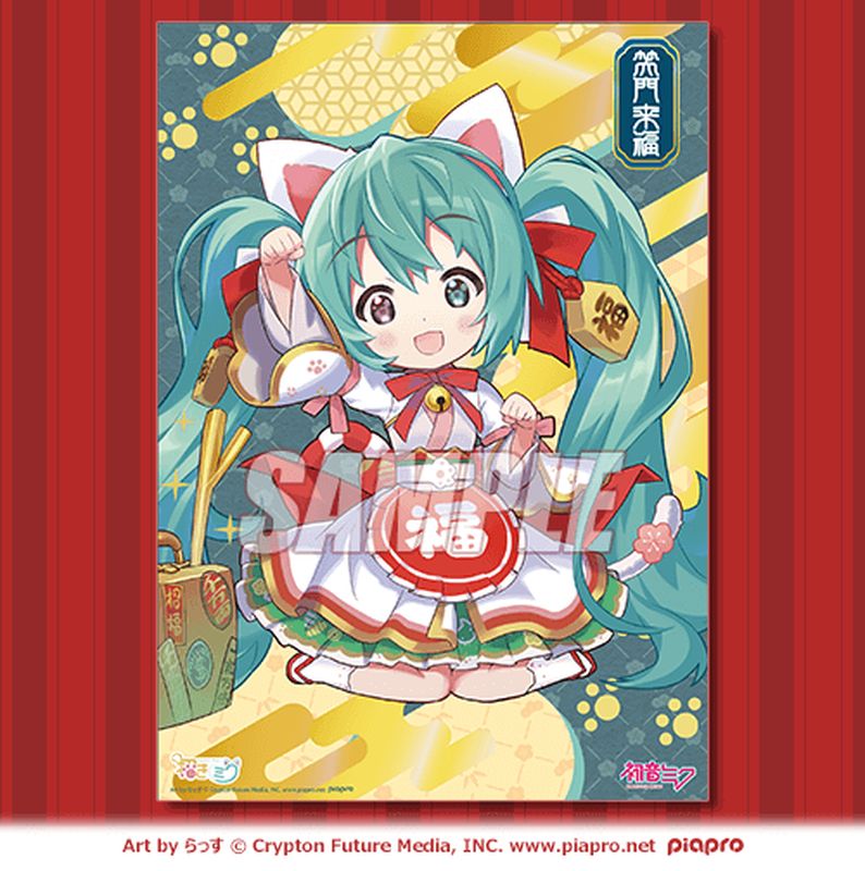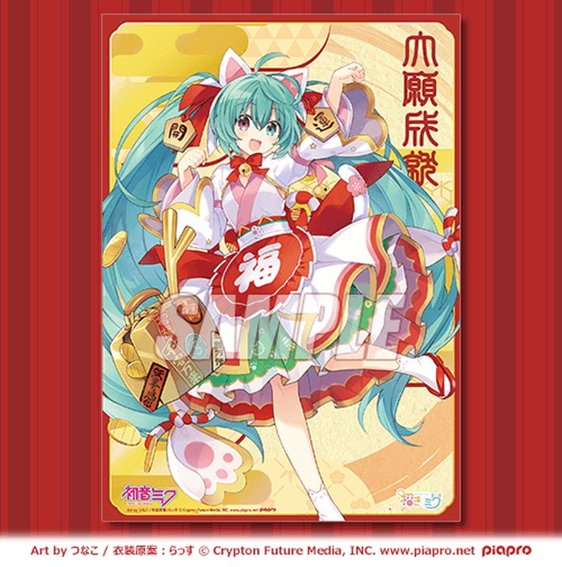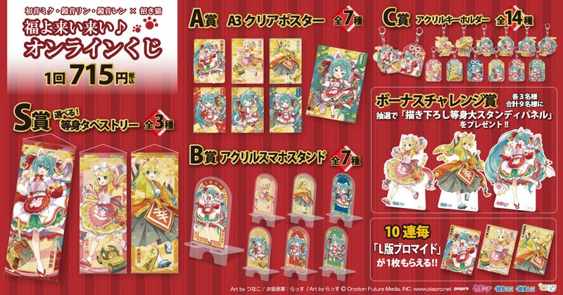 らっすさん描きおろしの招きミクのデフォルメイラストと、今回初お披露目となる、つなこ先生描きおろしの等身イラストを使用した豪華ラインナップのくじとなっております。