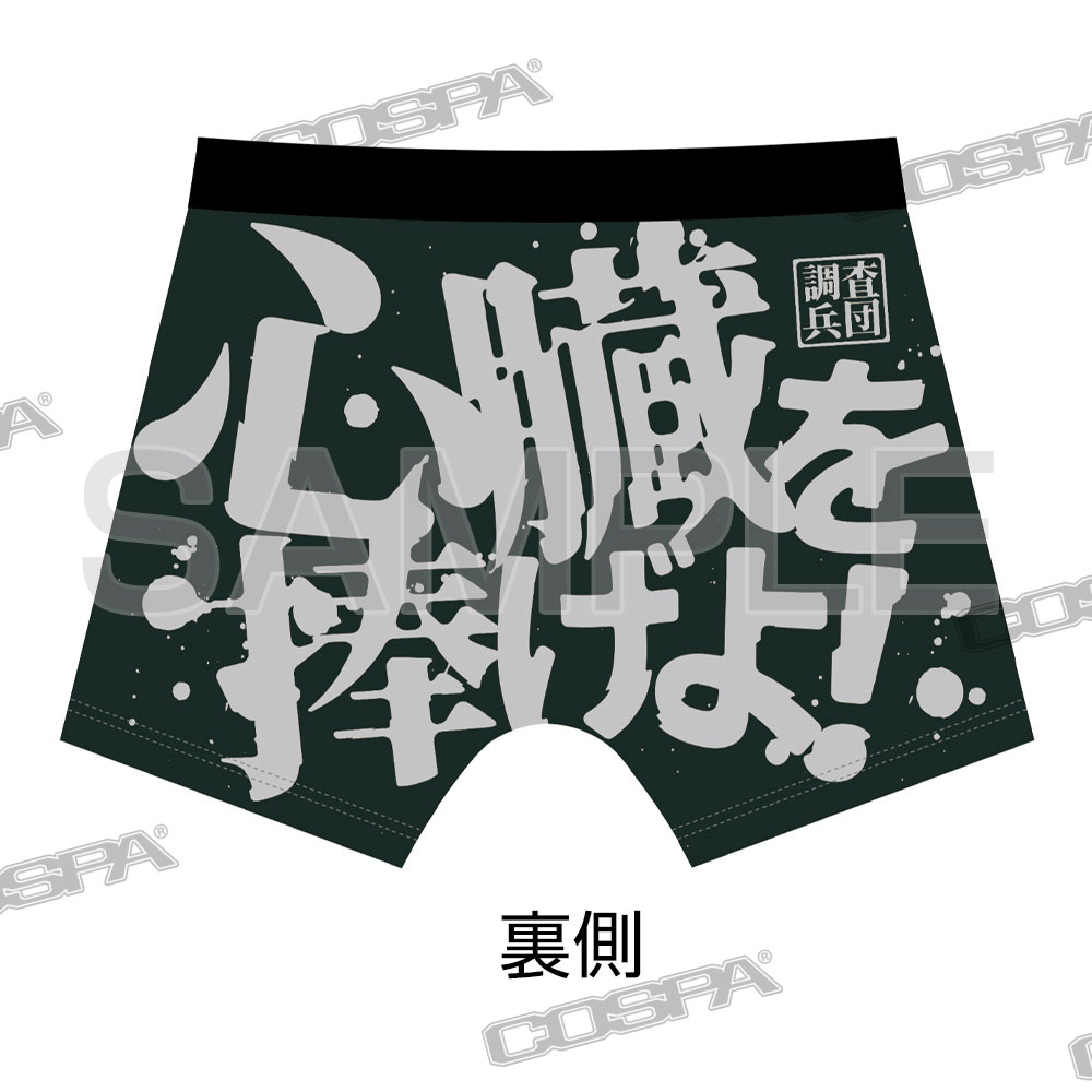 調査兵団のマークと“心臓を捧げよ”のセリフがデザインされたボクサーパンツです。履くだけでテンションアップ間違いなし! 伸縮性抜群で着心地のいい素材がうれしい1枚。