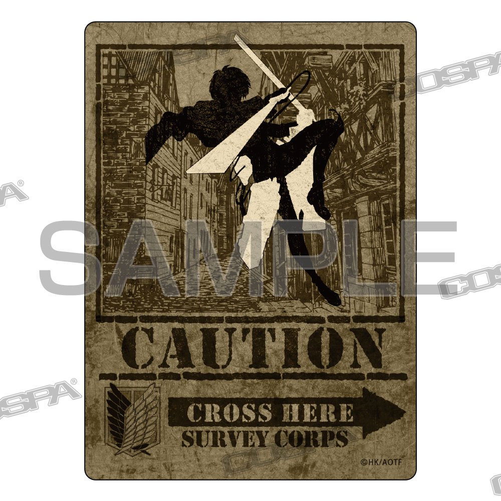 いろいろなものに貼って楽しめる大きめサイズの“調査兵団横断注意”耐水ステッカーです。