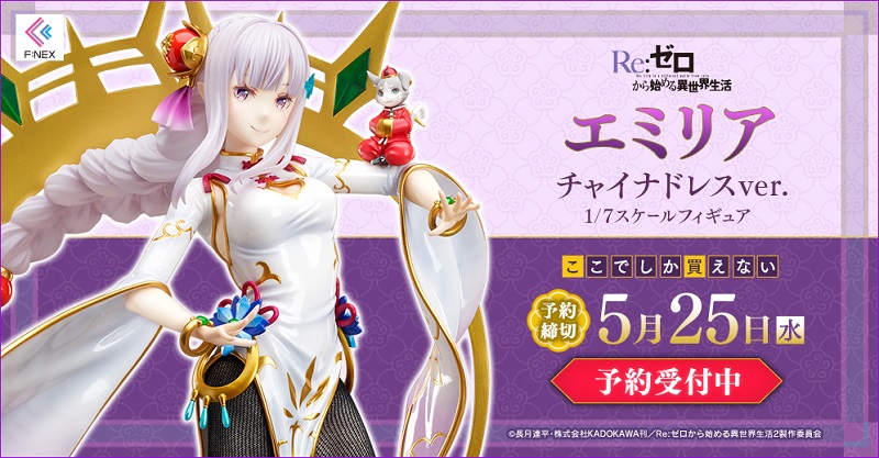 フリューは、高品質ホビーブランド“F:NEX(フェネクス)”の新商品として、TVアニメ『Re:ゼロから始める異世界生活』より『エミリア チャイナドレスver. 1/7スケールフィギュア』の発売を決定しました。本日3月15日より、フリューが運営するホビーECサイト“F:NEX”にて予約が可能となります。