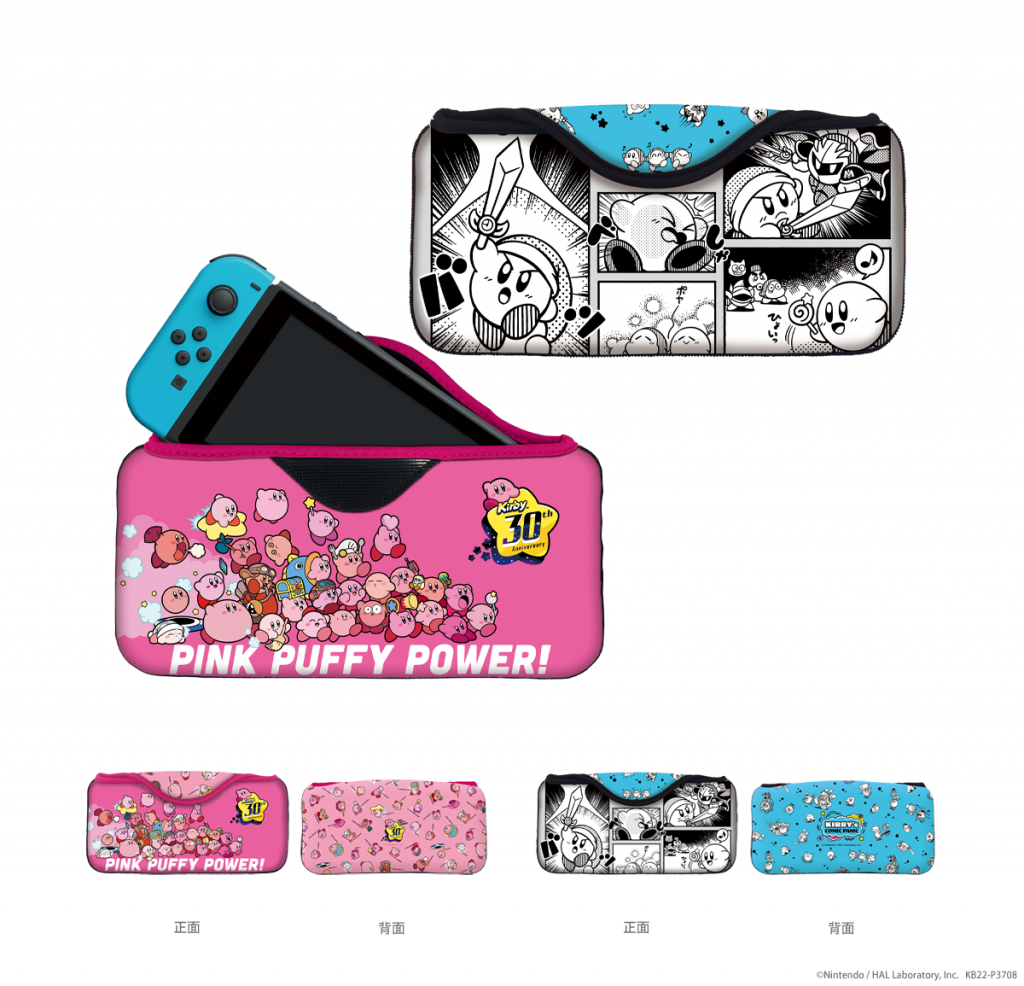 この度発売するNintendo Switch用ゲームアクセサリーは、30種類のカービィが元気いっぱい駆け巡る“星のカービィ30周年”デザインと、公式描きおこしエクストラ・アートワークスから“カービィのコミック・パニック”を使用したコミカルなデザインの2種類で、全7商品の展開です。