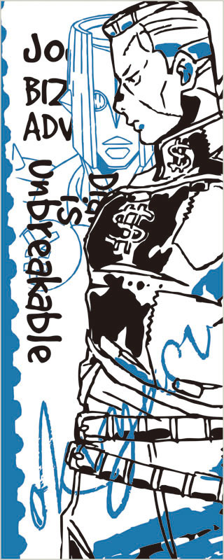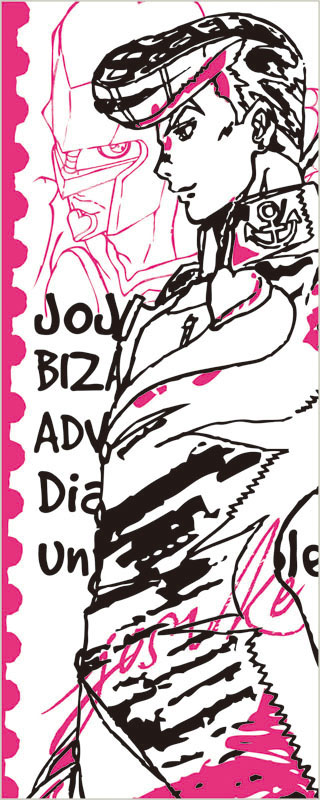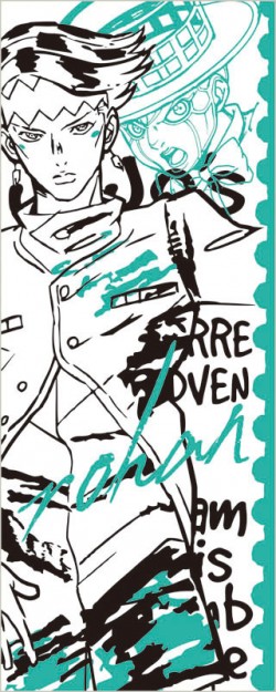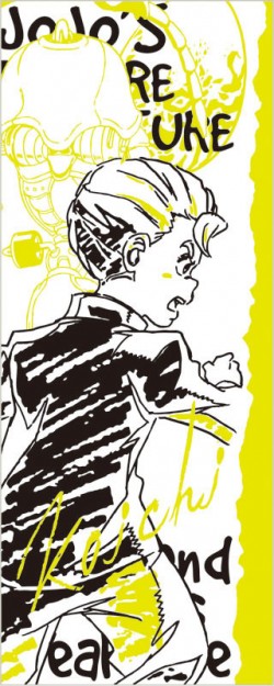仗助とスタンドのクレイジー・ダイヤモンドを描いたジャガードタオル。露伴によるスケッチをイメージした線画デザインです。