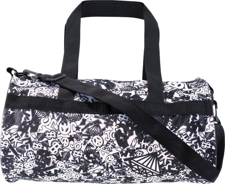 ジョジョのモチーフと「擬音」を散りばめたデザインのドラム缶バッグ。便利で使いやすい大容量です。最後のくじを引くとその場でもらえます。