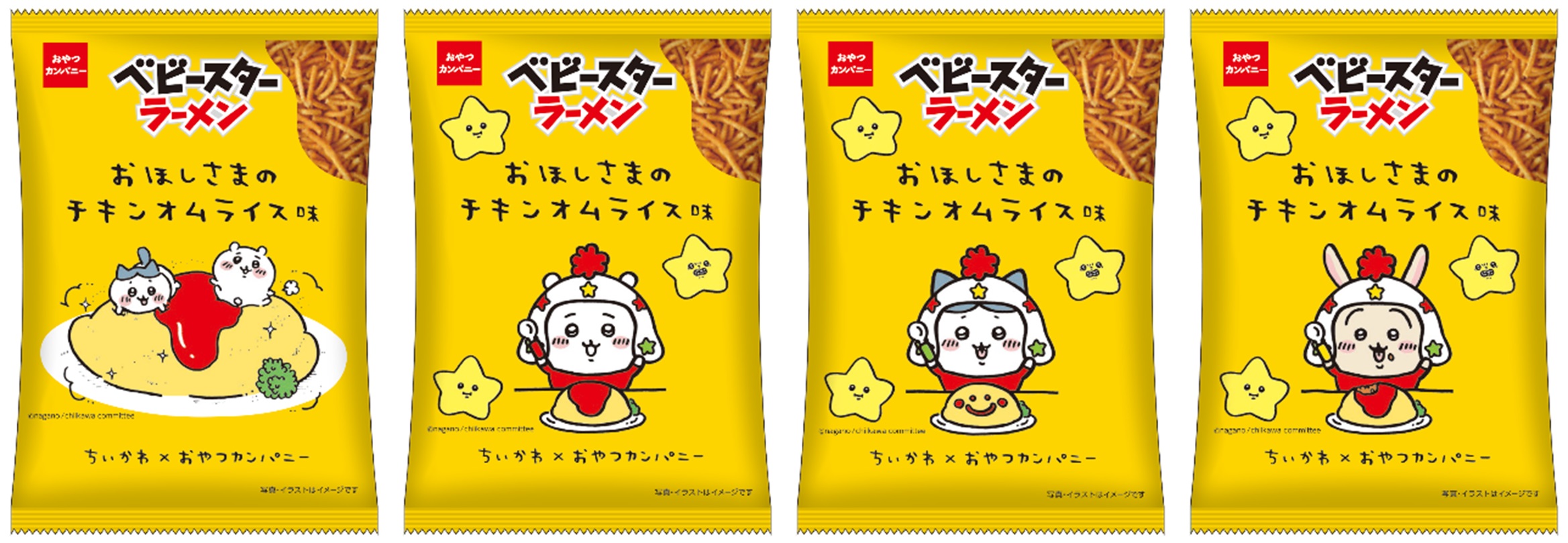 おやつカンパニーは、Twitter発の大人気作品『ちいかわ』とのコラボ企画として、作品に登場する“星のお礼のオムライス”をイメージした『ベビースターラーメン(おほしさまのチキンオムライス味)』を、2022年5月30日より全国にて発売します。