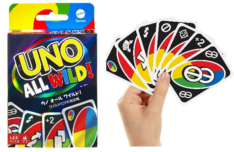 米国マテル社の日本法人マテル・インターナショナルは、2021年に50周年を迎えた人気カードゲーム『UNO(ウノ)』シリーズから、『ウノ オールワイルド』を4月中旬より発売いたします。