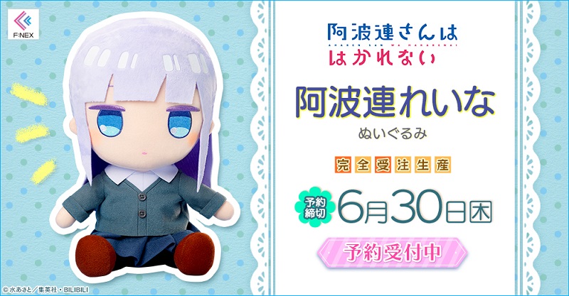 フリューは、高品質ホビーブランド“F:NEX(フェネクス)”の新商品として、TVアニメ『阿波連さんははかれない』より『阿波連れいなぬいぐるみ』の発売を決定いたしました。本日4月27日より、フリューが運営するホビーECサイト“F:NEX”にて予約が可能となります。