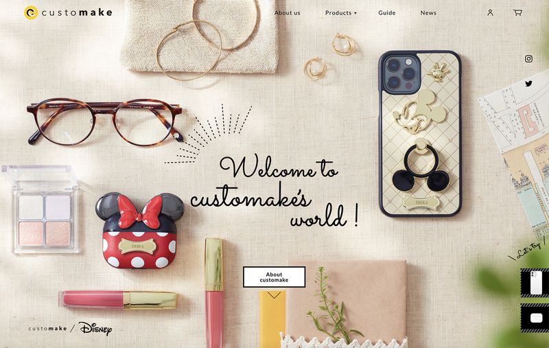 Customakeは、お気に入りのキャラクターのアイテムをカスタマイズして、世界で一つのオリジナルアイテムを作ることができるキャラクターカスタマイズショップです。毎日の生活に欠かせないiPhoneケースやAir Podsケースがあなたの思いのままにカスタマイズできます。