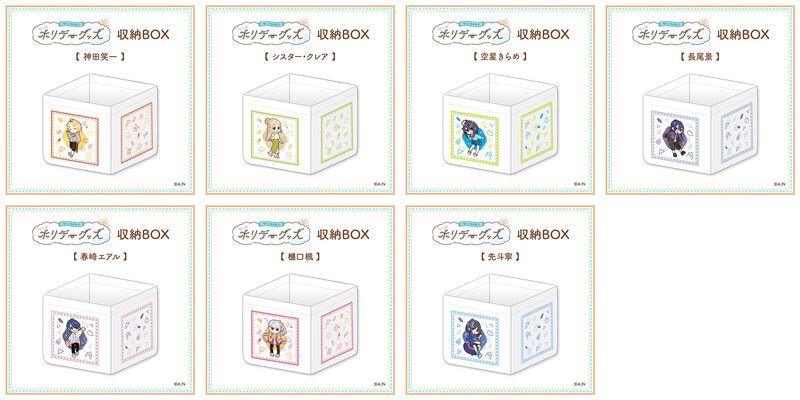 にじさんじライバーの神田笑一、シスター・クレア、空星きらめ、長尾景、春崎エアル、樋口楓、先斗寧、7名のビジュアルがデザインされた“にじさんじ ホリデーグッズ”が登場。