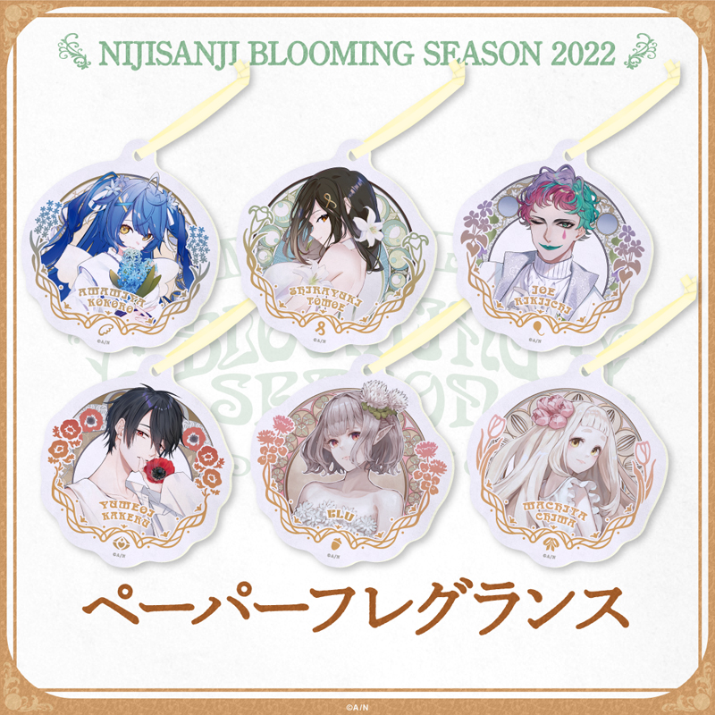 2022年5月31日18:00から“にじさんじブルーミングシーズン”グッズをにじストアにて販売開始。天宮こころ、える、白雪巴、ジョー・力一、町田ちま、夢追翔6名のライバーが花をモチーフにした“にじさんじブルーミングシーズン”グッズとして登場!
