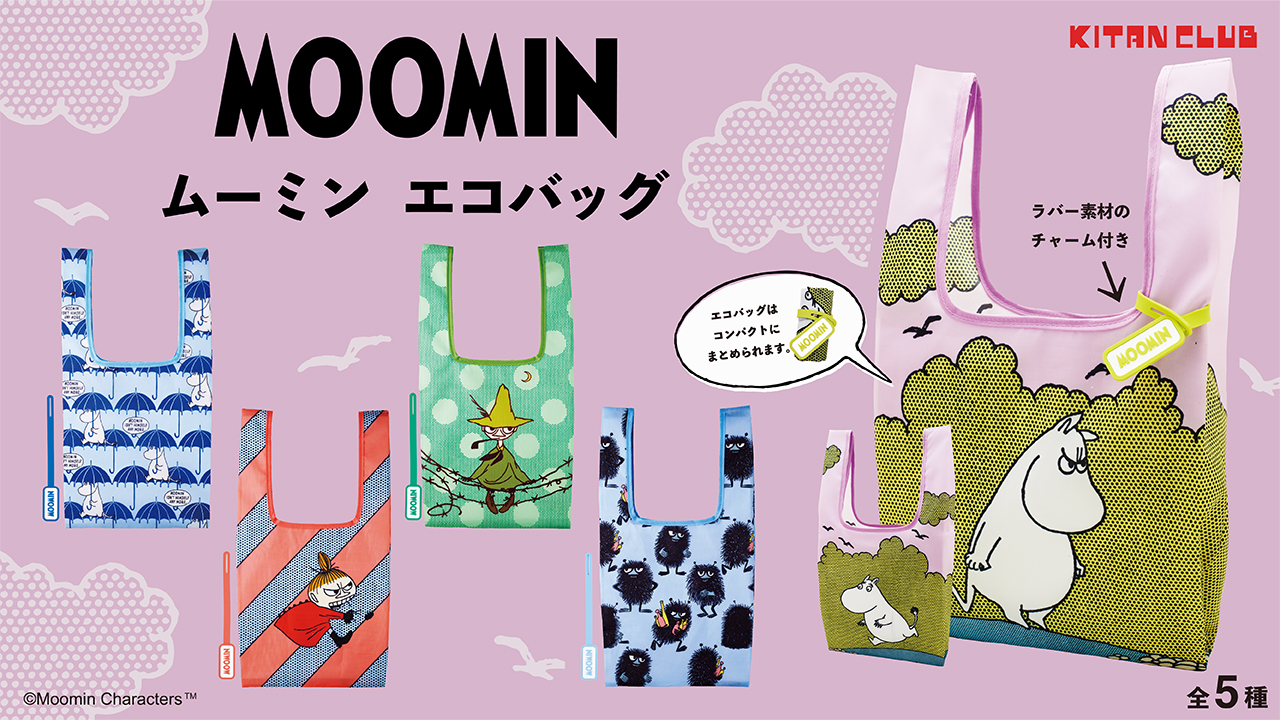 キタンクラブは『ムーミン エコバッグ』(各500円(税込)、全5種)を2022年6月上旬よりカプセルトイにて発売します。
