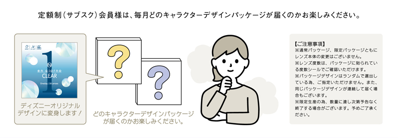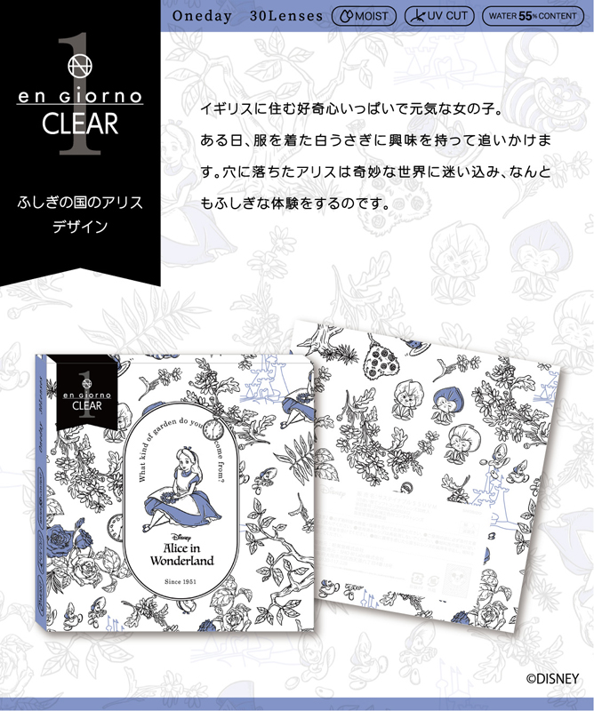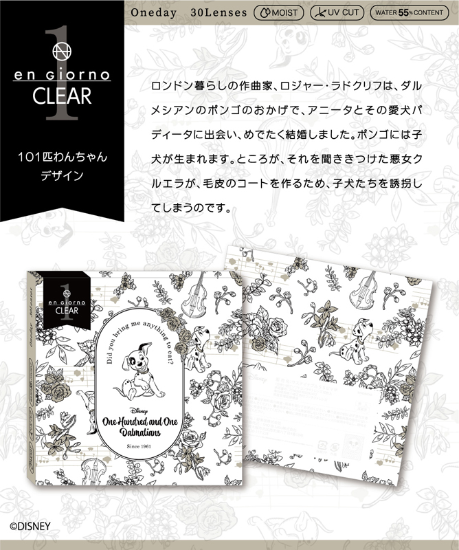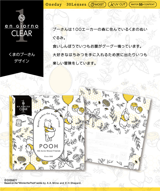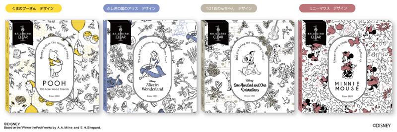 この度dicon限定として、『くまのプーさん』、『ふしぎの国のアリス』、『101匹わんちゃん』、『ミニーマウス』のキャラクターが、かわいいオリジナルデザインパッケージ(クリアコンタクトレンズのパッケージデザインとして)になりました。