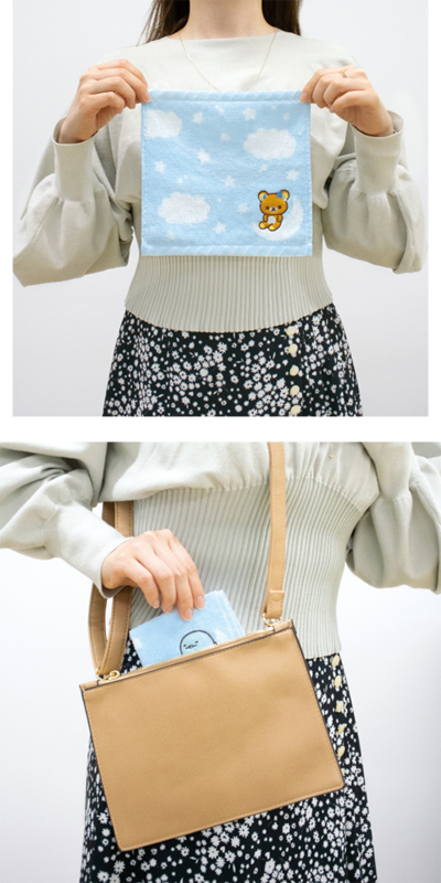 いつものミニタオルよりも小さめのコンパクトサイズ。四つ折りでポケットや小さいバッグにもかさばらず入れられます!