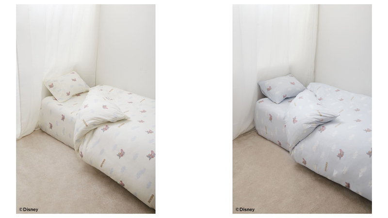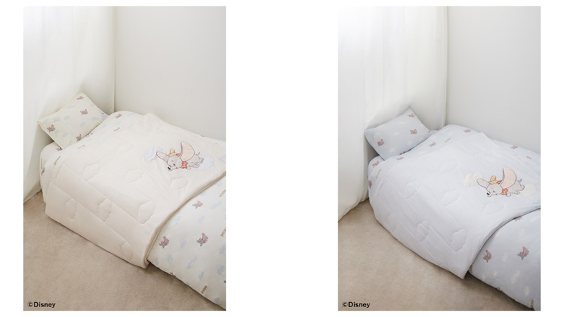1941年に制作されたディズニーのアニメーション『ダンボ』。そのアニメーションの中からダンボが初めて空を飛ぶシーンをそのまま再現した心地よい風合いの寝具セットやキルトケット、ダンボとともに空を飛んでいるような夢心地にしてくれるふわふわモコモコの抱き枕など幸せで癒されるラインアップを取り揃えました。