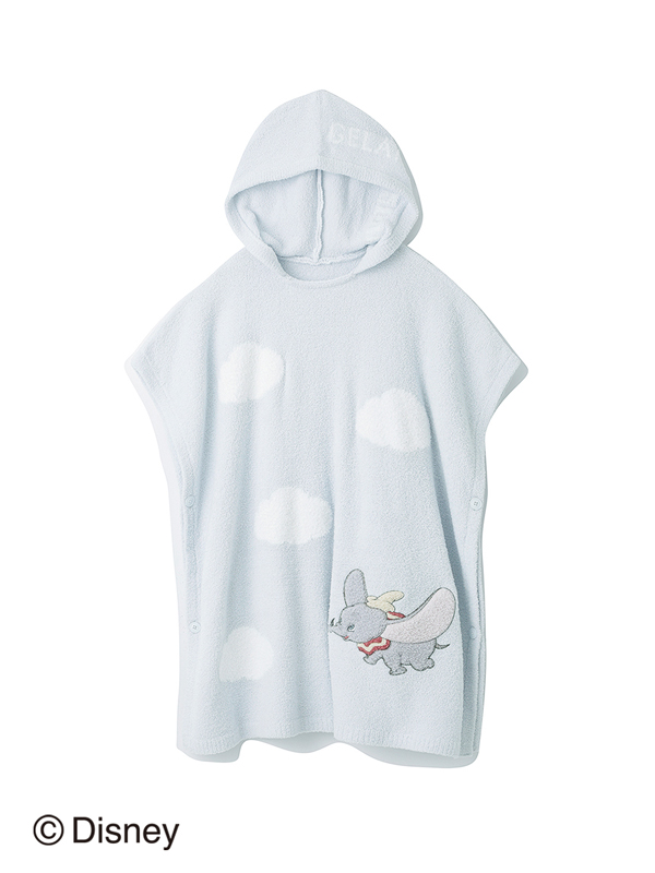 雲モチーフのジャガードに、空飛ぶダンボをモコモコ素材でアップリケ刺繍したポンチョ。吸水性に優れた“ベビモコ”素材はお風呂上がりにぴったりです。大人サイズとキッズサイズがあるので、ご家族おそろいで着ていただけます。