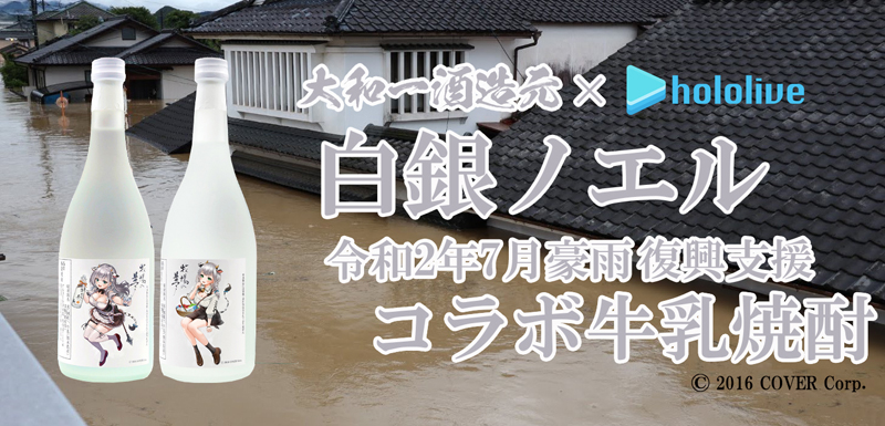 カバーは、大和一酒造元が製造する『牛乳焼酎 牧場の夢』と『ホロライブ』所属VTuberの『白銀ノエル』がコラボしたオリジナルパッケージを2022年6月17日20:00より完全受注生産で予約開始することをお知らせいたします。この商品の収益の一部は、令和2年7月豪雨災害の復興支援として被災地へ寄付されます。