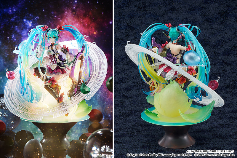 台座には発光ギミックを搭載。七色に光ることでジャケットアートのように幻想的な演出が可能です。ぜひあなたのお手元にお迎えください。