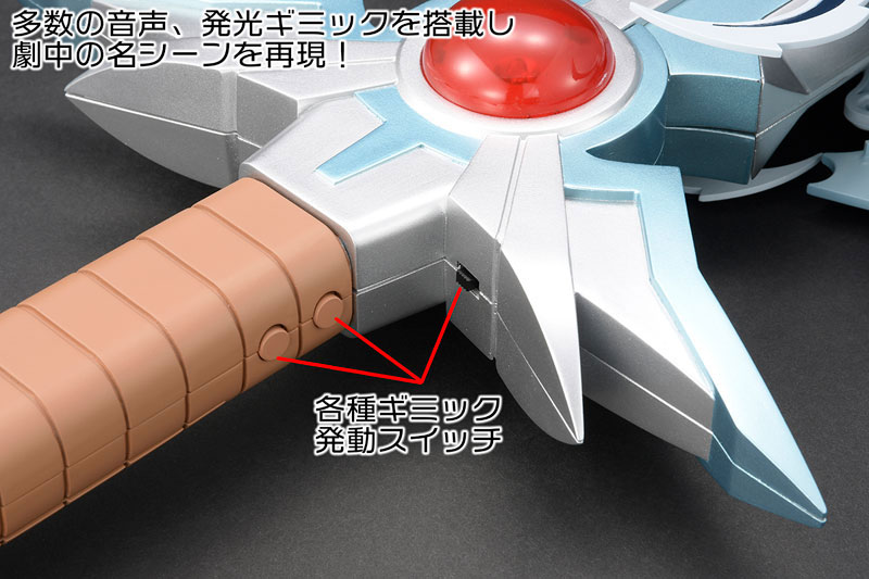 『ドラゴンクエスト ダイの大冒険』より“ダイの剣”が、鞘を含めた全長約1mのビッグボリュームで登場。LEDによる発光ギミックやBGM、ダイ役の種崎敦美氏による撮り下ろし音声など、様々なギミックが盛り込まれた1/1スケールのプロップアイテムとなっています。