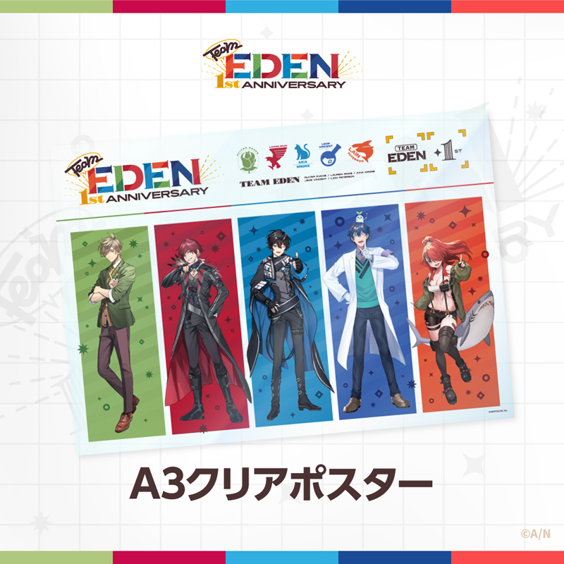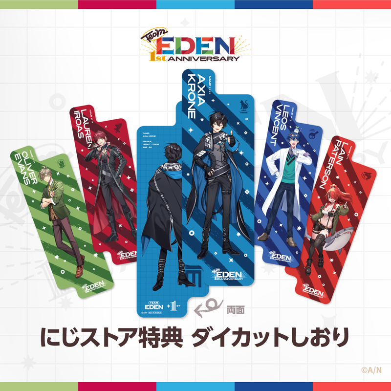 アクシア・クローネ、ローレン・イロアス、レオス・ヴィンセント、オリバー・エバンス、レイン・パターソンのユニット“エデン組”1周年を記念したグッズが登場!