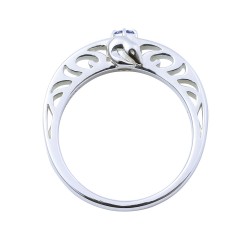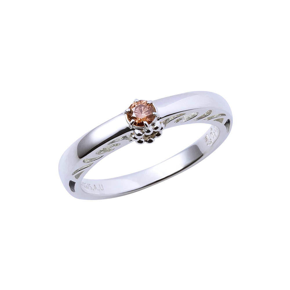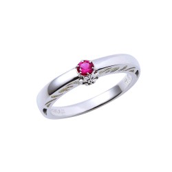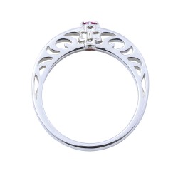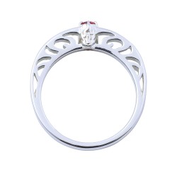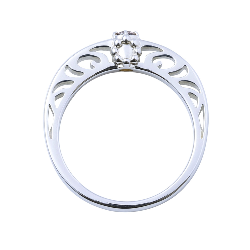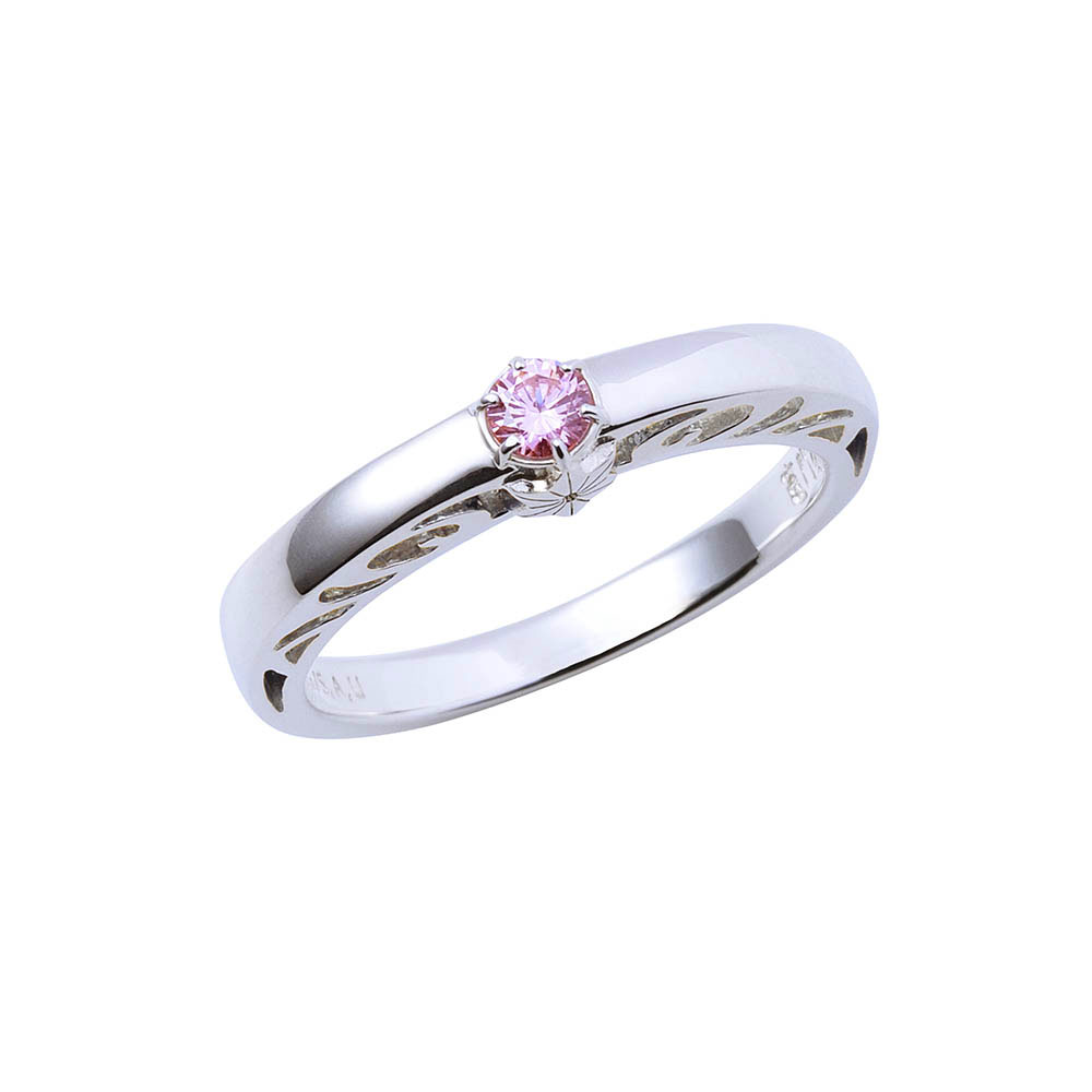 TVアニメ『鬼滅の刃』に登場する竈門禰豆子のリングです。甲丸フォルムに大粒のイメージカラーストーンをセットし、内側には名前刻印を施しました。石座部分には着物の模様をさりげなく取り込んだクラシカルなデザインです。