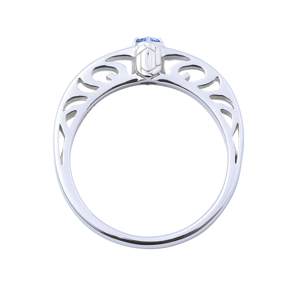 TVアニメ『鬼滅の刃』に登場する時透無一郎のリングです。甲丸フォルムに大粒のイメージカラーストーンをセットし、内側には名前刻印を施しました。石座部分には日輪刀の鍔をさりげなく取り込んだクラシカルなデザインです。