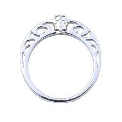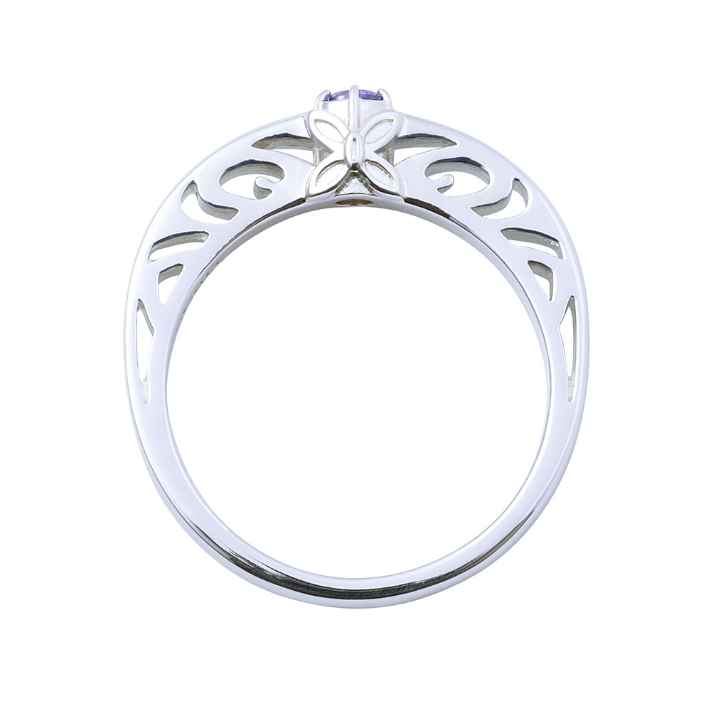 TVアニメ『鬼滅の刃』に登場する胡蝶しのぶのリングです。甲丸フォルムに大粒のイメージカラーストーンをセットし、内側には名前刻印を施しました。石座部分には日輪刀の鍔をさりげなく取り込んだクラシカルなデザインです。