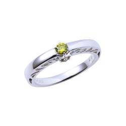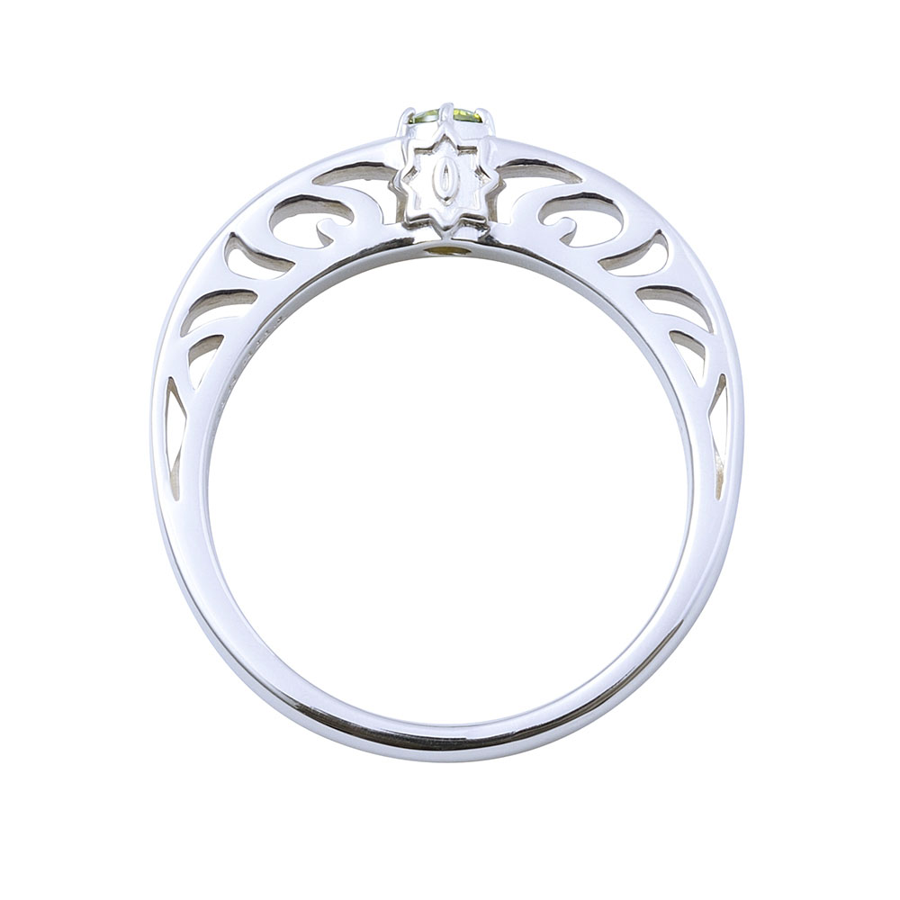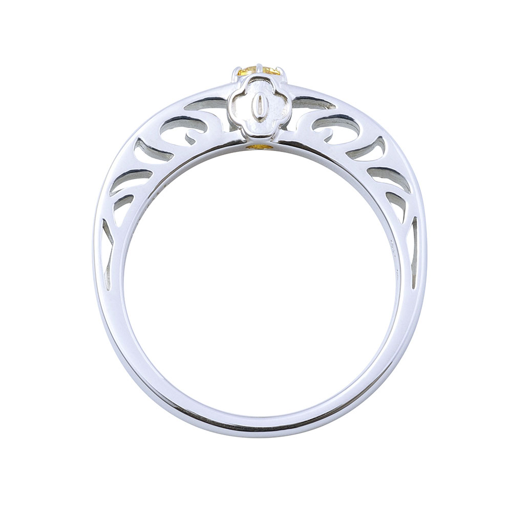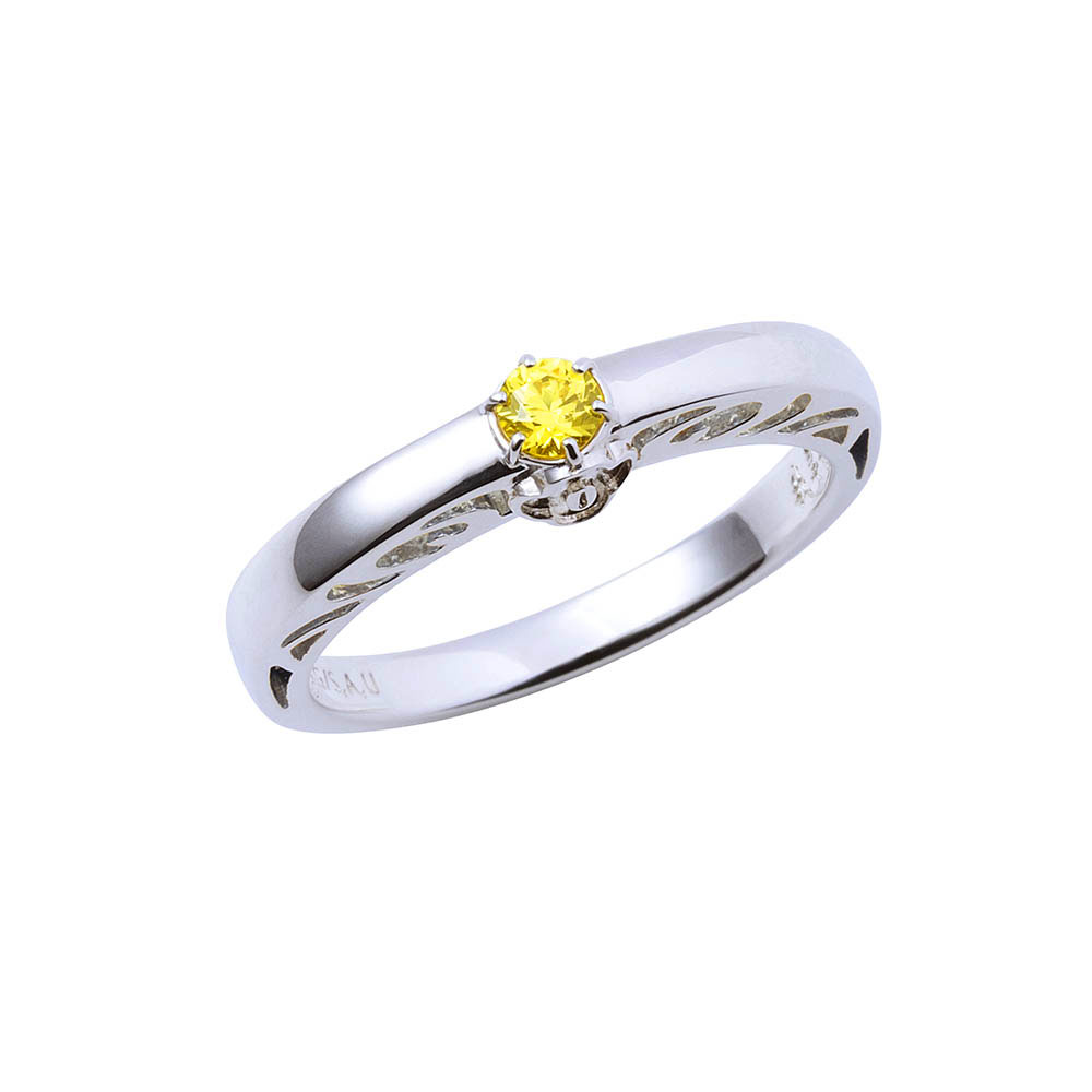 TVアニメ『鬼滅の刃』に登場する我妻善逸のリングです。甲丸フォルムに大粒のイメージカラーストーンをセットし、内側には名前刻印を施しました。石座部分には日輪刀の鍔をさりげなく取り込んだクラシカルなデザインです。