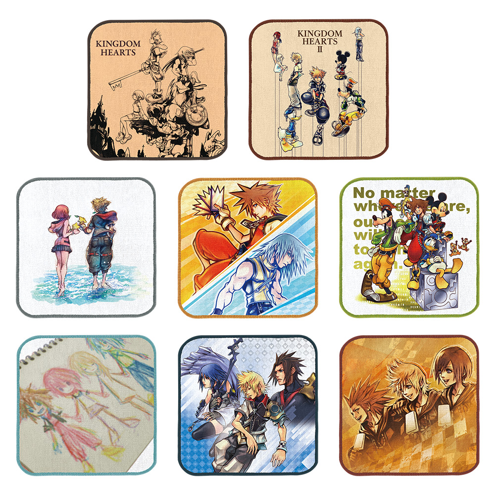 このほか“王様(ミッキーマウス)”、“ドナルド”、“グーフィー”のぬいぐるみマスコットに、キャンバスボードやデザインが選べるハンドタオル、グラス、作品を象徴するアイテムである、キーブレードデザインのメタルチャームと、いずれも『KINGDOM HEARTS』の世界観を楽しめる一番くじならではの商品ばかりです。