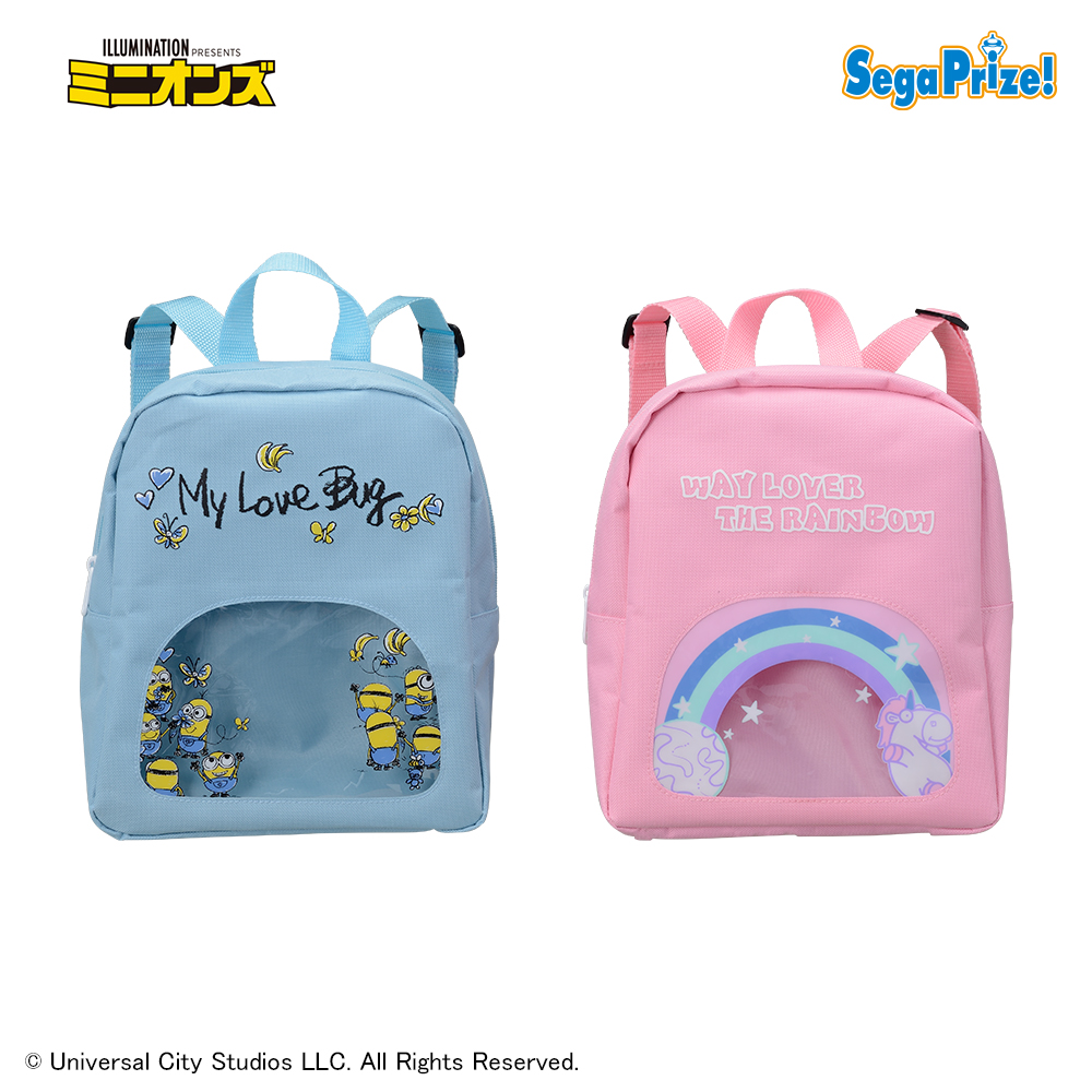 パステルカラーと中身が見えるクリアデザインが特長的なリュック。“ミニオンズ”や“怪盗グルー”シリーズに登場するユニコーンの“フラッフィ”の柄2種類展開。