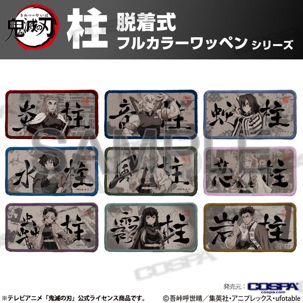 炎柱/音柱/蛇柱/水柱/風柱/恋柱/蟲柱/霞柱/岩柱 脱着式フルカラーワッペン:各1,430円(税込)