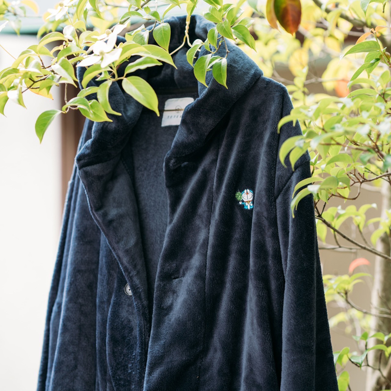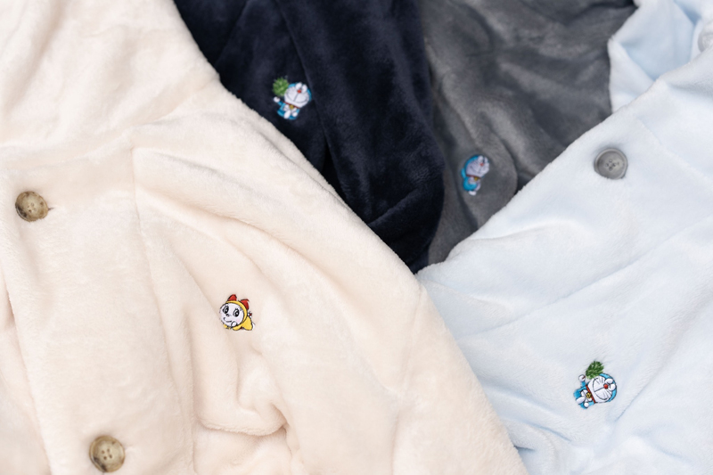 今回、新たにラインナップされるのは、サラッとした生地感によりサウナで使い勝手の良い面と、フカフカの拭き心地の面と、表と裏で素材を変えた画期的な泉州タオル“菊風”製のハイブリットサウナタオル。ワンポイントでかわいい『ドラえもん』の刺繍入りです。