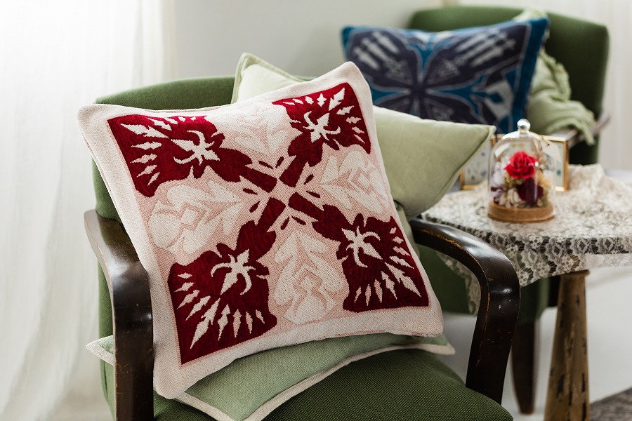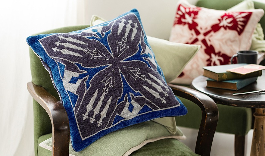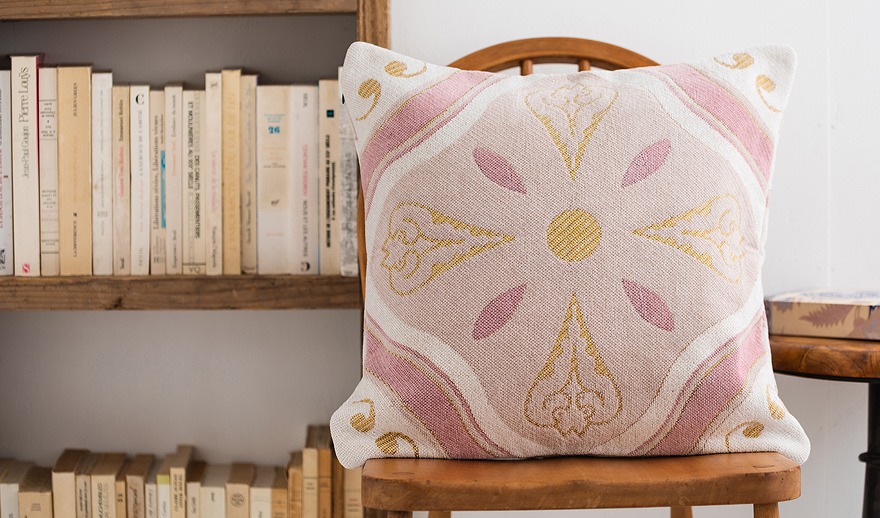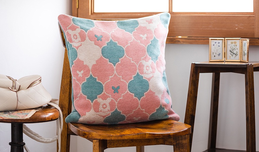 お部屋の雰囲気を変えたいときは、クッションを変えるのがオススメ! 模様にインパクトがあるので、シンプルなクッションと並べるとおしゃれ度UP。